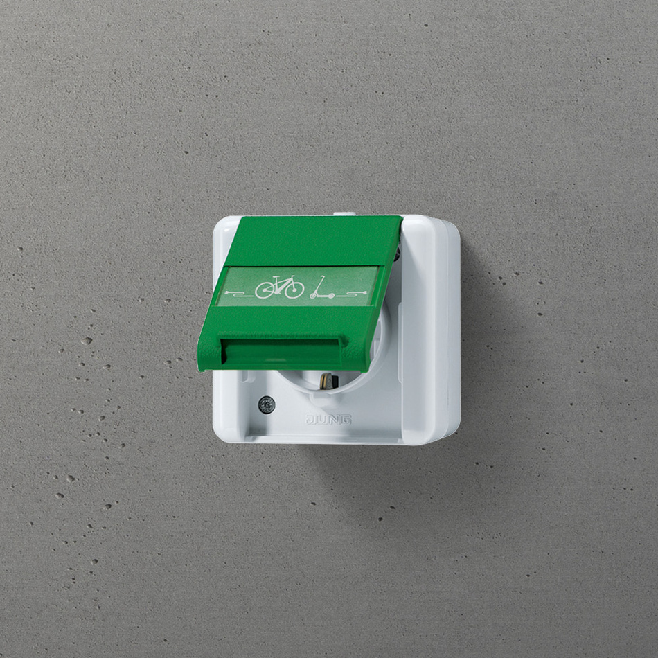 Pünktlich zum Start jeder frühsommerlichen Fahrradsaison: Zum Wiederaufladen von E-Bikes oder E-Scootern bietet JUNG mit der E-Bike SCHUKO® Steckdose die ideale Variante des Aufputz-Programms WG 800 an. Welche Vorzüge die Steckdose bietet, erfahren Sie auf unserer Website.